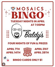 Bingo benefiting Mosaics every Tuesday evening in April!